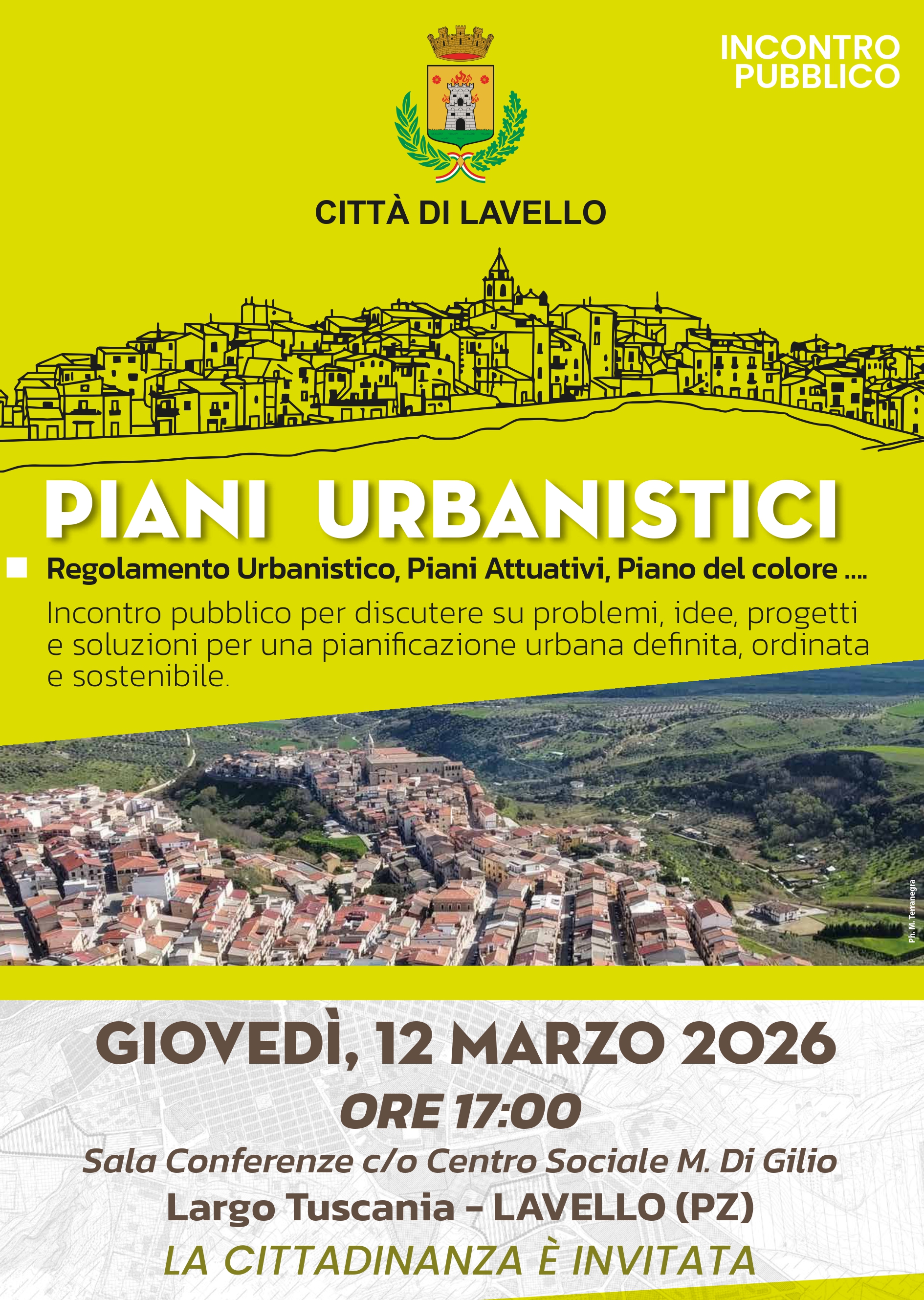 COMUNE DI LAVELLOProvincia di PotenzaPianificazione urbana a Lavello: incontro pubblico sui piani urbanistici